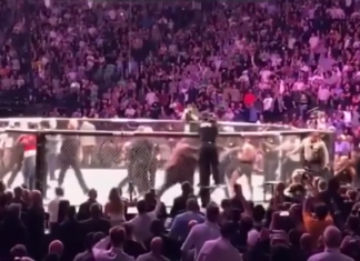 Brawl after UFC 229 - Khabib Nurmagomedov vs. Conor McGregor. Khabib attacked McGregor's Team
