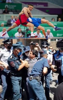 Brawl after UFC 229 - Khabib Nurmagomedov vs. Conor McGregor. Khabib attacked McGregor's Team
